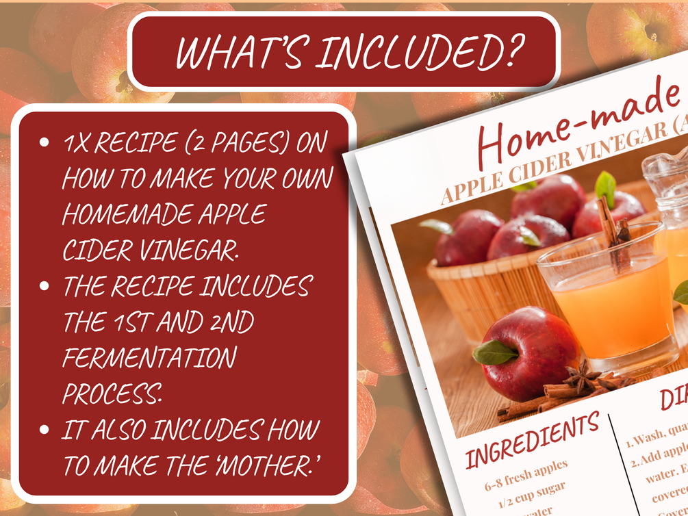 Embrace the benefits of homemade apple cider vinegar and enhance your meals with this versatile ingredient. Download your guide to Homemade Apple Cider Vinegar with "Mother" today and start your fermentation journey!